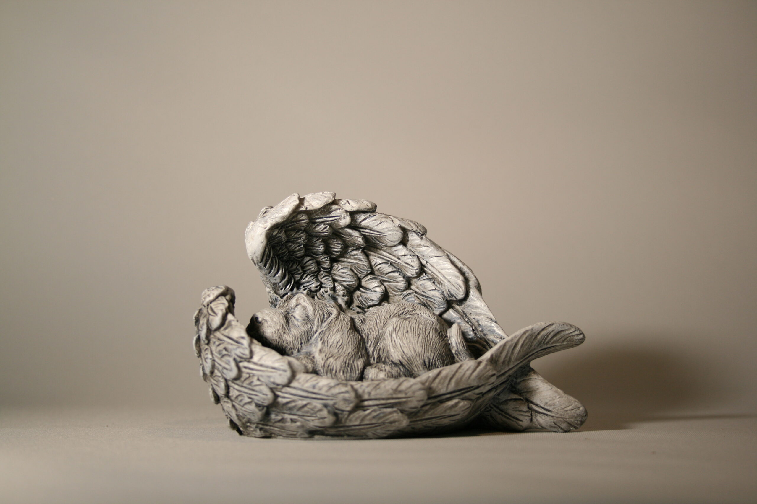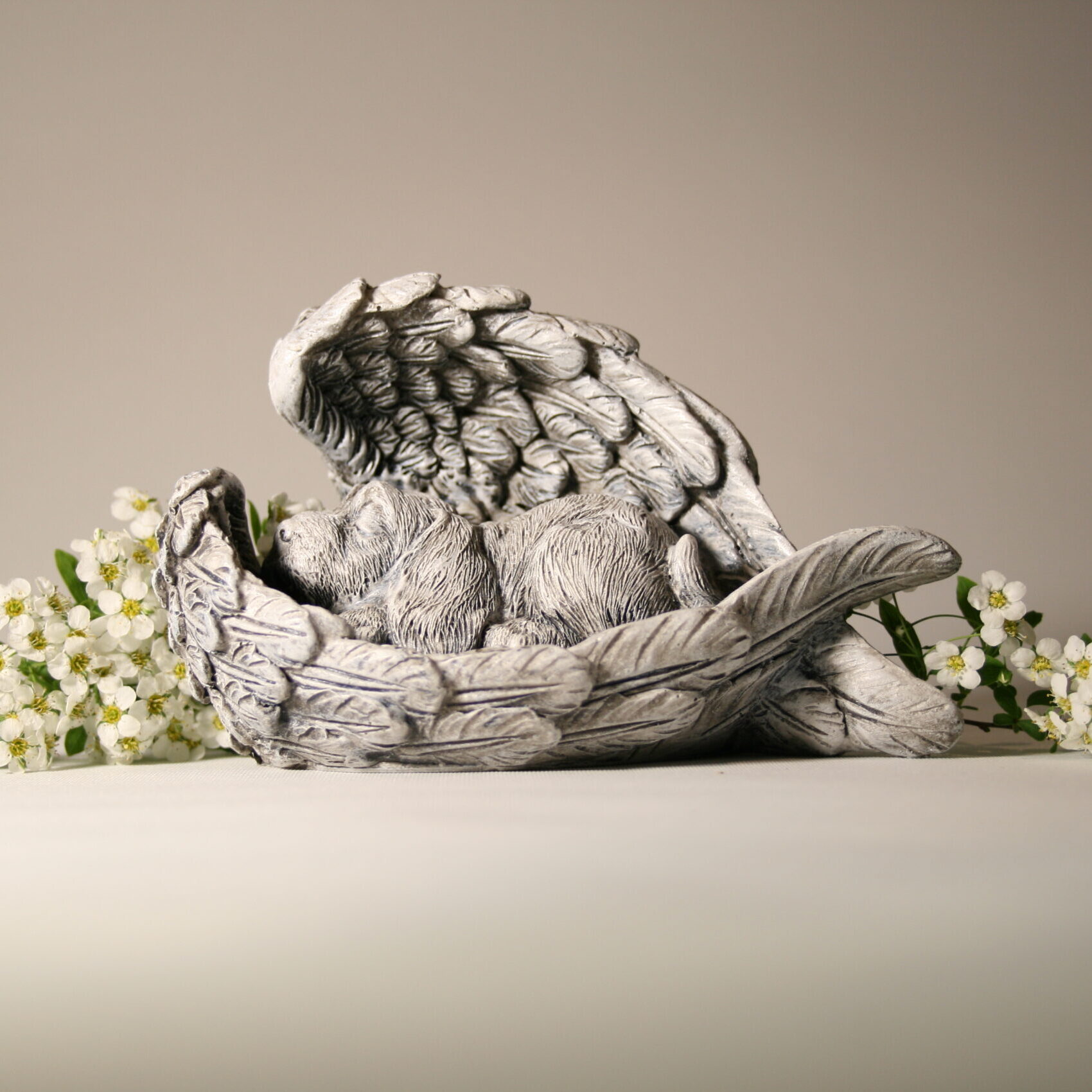 Pieni ja tyylikäs koiraenkeli, joka sopii muistoesineeksi tai koristeeksi.