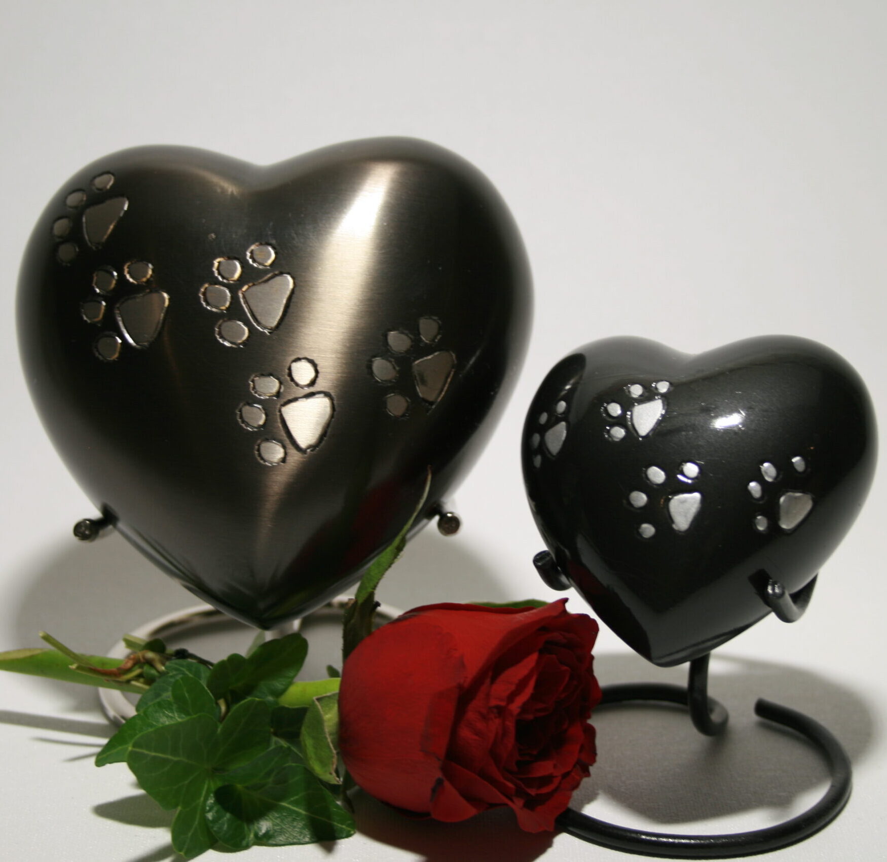 Hjärt-metallurnan för husdjur finns i två färger och två storlekar. Denna urna passar för små husdjur. Den är ett fint val om du vill spara en del av askan och sprida eller begrava resten i naturen.