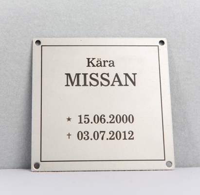 - Minnesplakett, klar, i borstad stål