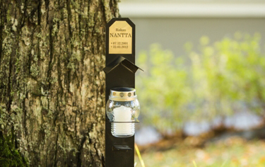 • Minnesprodukt: Tähtipölys-Ljus, med minnesplakett och gravljus